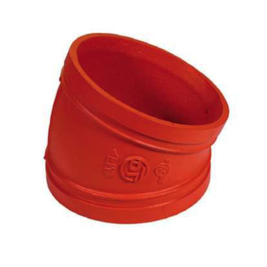 22.5˚ grooved elbow is a fitting designed to change the direction of piping systems by 22.5 degrees, providing flexibility and efficiency in directing pipes within industrial facilities. It ensures secure and leak-proof connections, enhancing the overall reliability and longevity of the system. Grooved pipe systems offer easy assembly and disassembly, allowing for quick and practical installation, minimize the risk of leaks due to high-quality materials, reduce vibrations and noise caused by fluid flow, and have a wide range of applications across various industries. They demonstrate high durability under challenging operating conditions and are long-lasting, offering cost-effectiveness by reducing maintenance and repair costs in the long term. Additionally, their modular design allows systems to be easily customized and expanded according to needs. Grooved connection systems are widely used in the chemical and petrochemical industries, power generation facilities, construction and infrastructure projects, fire suppression water systems, HVAC (Heating, Ventilation, and Air Conditioning) systems, and oil and gas pipelines.