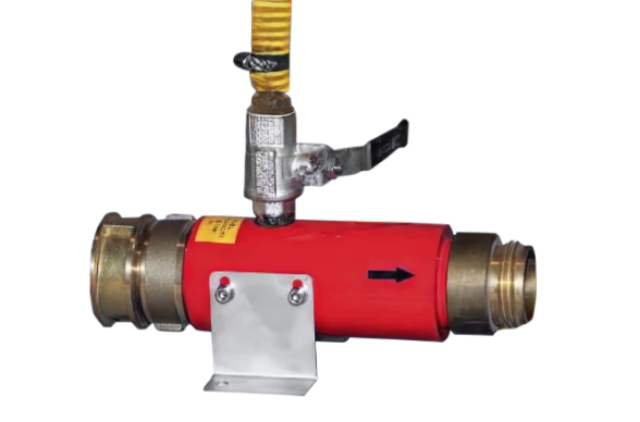 Hat tipi karıştırıcılar venturi tip kendinden emiş mekanizması ile çalışan oranlayıcılardır. Bu oranlayıcıların kullanıldığı sistemlerde Köpük konsantresi, bir bladder tank içinde değil doğrudan hat tipi karıştırıcıya bağlı bir köpük kabında bidon, atmosferik tank, vb. bulunur. Venturi tipi karıştırıcılar kendinden emiş mekanizması sayesinde su kaynağından gelen su ile karışarak istenilen köpük karışımı elde edilir. FIERRE iki tip hat tipi karıştırıcı üretmektedir: • Düşük kapasiteler için Model FI-ML • Yüksek kapasiteler için Model FI-MLB Dişli hat tipi karıştırıcı model FI-ML , alüminyumdan imal edilmiş olup , 200 lt/dk , 300 lt/dk , 400 lt/dk , 600 lt/dk ve 800 lt/dk kapasiteli seçenekleri mevcuttur. İsteğe göre paslanmaz çelik, pirinç ve bronzdan da imal edilebilir. Opsiyonel olarak , ürün üzerine eklenecek bir karıştırıcı vana sayesinde kullanıcı köpük karışım yüzdesini %3-%6 olarak ayarlayabilir.