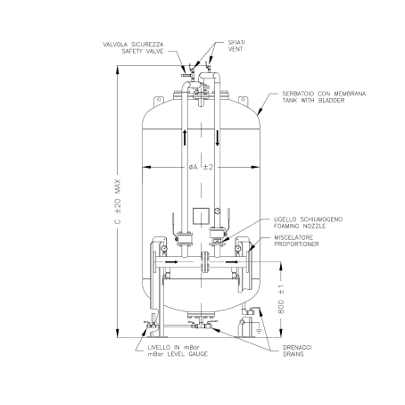 Not: Görsel oranlayıcı, su&köpük vanaları ve borulama dahil olan “ön-borulu” bladder tanka aittir. (Opsiyonel olarak mevcuttur)