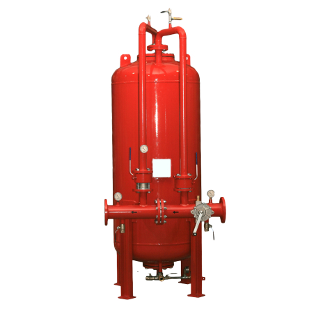 Bladder Tank, aşındırıcı köpük maddelerine karşı dayanıklı sentetik malzemeden yapılmış bir membran içeren ve bir köpük oranlayıcıyla donatılmış büyük bir köpük sıvı konsantresi kabıdır. Bladder Tank, test basıncı 18 bar ve dizayn basıncı 12 bar olan sertifikalı bir üründür. Ayrıca, -10°C ila +50°C arasındaki sıcaklık koşullarında güvenle kullanılabilir. Basit mekanizması ve minimum basınç kaybıyla farklı boyutlardaki köpük keselerini tutabilen bu ürün, köpük oranlama sistemlerinde güvenilir bir çözüm sunar. Köpük konsantresi iç membranda depolandığında, tank iç membranlı olarak kullanılırken, dış membrana temas ediyorsa ve konsantre kabın dışında bulunuyorsa dış membran olarak kullanılır. Bladder Tank, su şebekesinden gelen suyu kullanarak köpük oranlama işlemini gerçekleştirir. Basit bir mekanizma ile çalışan ürün, minimum basınç kaybı sağlayarak farklı boyutlardaki köpük keselerini tutabilir ve genellikle %1-%3-%6 oranlarında kalibre edilebilir. Standart veya geniş aralıklı köpük oranlayıcı modelleriyle uyumlu olan Bladder Tank, köpüklü sprinkler sistemleri için ideal bir çözümdür. Esneklik, dayanıklılık ve kolay kullanımıyla dikkat çeker.
