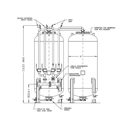 Not: Görsel oranlayıcı, su&köpük vanaları ve borulama dahil olan “ön-borulu” bladder tanka aittir. (Opsiyonel olarak mevcuttur)