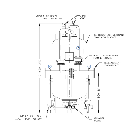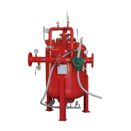 Bladder Tank, aşındırıcı köpük maddelerine karşı dayanıklı sentetik malzemeden yapılmış bir membran içeren ve bir köpük oranlayıcıyla donatılmış büyük bir köpük sıvı konsantresi kabıdır. Bladder Tank, test basıncı 18 bar ve dizayn basıncı 12 bar olan sertifikalı bir üründür. Ayrıca, -10°C ila +50°C arasındaki sıcaklık koşullarında güvenle kullanılabilir. Basit mekanizması ve minimum basınç kaybıyla farklı boyutlardaki köpük keselerini tutabilen bu ürün, köpük oranlama sistemlerinde güvenilir bir çözüm sunar. Köpük konsantresi iç membranda depolandığında, tank iç membranlı olarak kullanılırken, dış membrana temas ediyorsa ve konsantre kabın dışında bulunuyorsa dış membran olarak kullanılır. Bladder Tank, su şebekesinden gelen suyu kullanarak köpük oranlama işlemini gerçekleştirir. Basit bir mekanizma ile çalışan ürün, minimum basınç kaybı sağlayarak farklı boyutlardaki köpük keselerini tutabilir ve genellikle %1-%3-%6 oranlarında kalibre edilebilir. Standart veya geniş aralıklı köpük oranlayıcı modelleriyle uyumlu olan Bladder Tank, köpüklü sprinkler sistemleri için ideal bir çözümdür. Esneklik, dayanıklılık ve kolay kullanımıyla dikkat çeker.