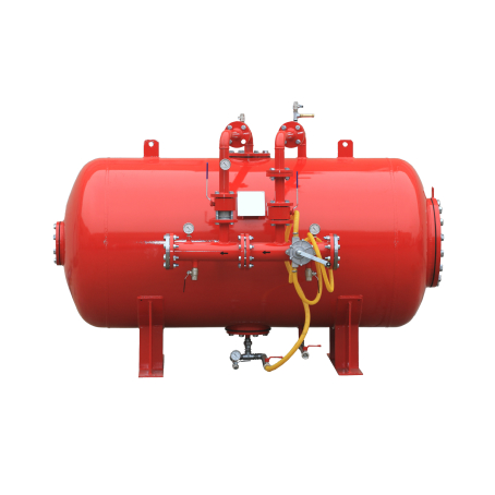 Bladder Tank, aşındırıcı köpük maddelerine karşı dayanıklı sentetik malzemeden yapılmış bir membran içeren ve bir köpük oranlayıcıyla donatılmış büyük bir köpük sıvı konsantresi kabıdır. Bladder Tank, test basıncı 18 bar ve dizayn basıncı 12 bar olan sertifikalı bir üründür. Ayrıca, -10°C ila +50°C arasındaki sıcaklık koşullarında güvenle kullanılabilir. Basit mekanizması ve minimum basınç kaybıyla farklı boyutlardaki köpük keselerini tutabilen bu ürün, köpük oranlama sistemlerinde güvenilir bir çözüm sunar. Köpük konsantresi iç membranda depolandığında, tank iç membranlı olarak kullanılırken, dış membrana temas ediyorsa ve konsantre kabın dışında bulunuyorsa dış membran olarak kullanılır. Bladder Tank, su şebekesinden gelen suyu kullanarak köpük oranlama işlemini gerçekleştirir. Basit bir mekanizma ile çalışan ürün, minimum basınç kaybı sağlayarak farklı boyutlardaki köpük keselerini tutabilir ve genellikle %1-%3-%6 oranlarında kalibre edilebilir. Standart veya geniş aralıklı köpük oranlayıcı modelleriyle uyumlu olan Bladder Tank, köpüklü sprinkler sistemleri için ideal bir çözümdür. Esneklik, dayanıklılık ve kolay kullanımıyla dikkat çeker.